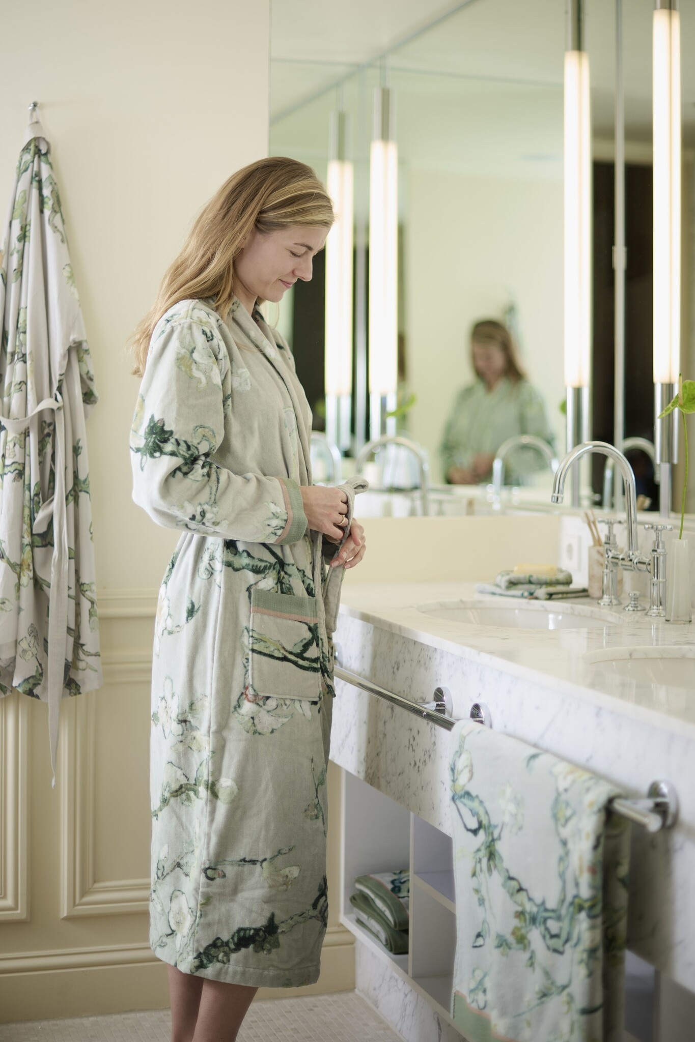 Ontdek de Beddinghouse x Van Gogh Museum Blossom Badjas Groen M: een elegante, katoenen badjas waarin kunst en comfort samenkomen. Deze groene badjas met bloemendessin is ontworpen voor wie stijl en luxe wil combineren met dagelijks gebruiksgemak. Perfect als statement in de badkamer, een chique badjas voor de sauna of een verfijnd cadeau voor liefhebbers van design en kwaliteit.
