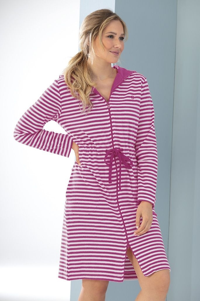 Of je nu jezelf wilt verwennen of een perfect cadeau zoekt voor een speciale gelegenheid, deze badjas is een uitstekende keuze. De combinatie van luxe en functionaliteit maakt het een onmisbaar item in je garderobe. Met zijn stijlvolle ontwerp in een zachte roze kleur en het trendy streepdessin, is deze badjas niet alleen praktisch, maar ook een mode-uiting.