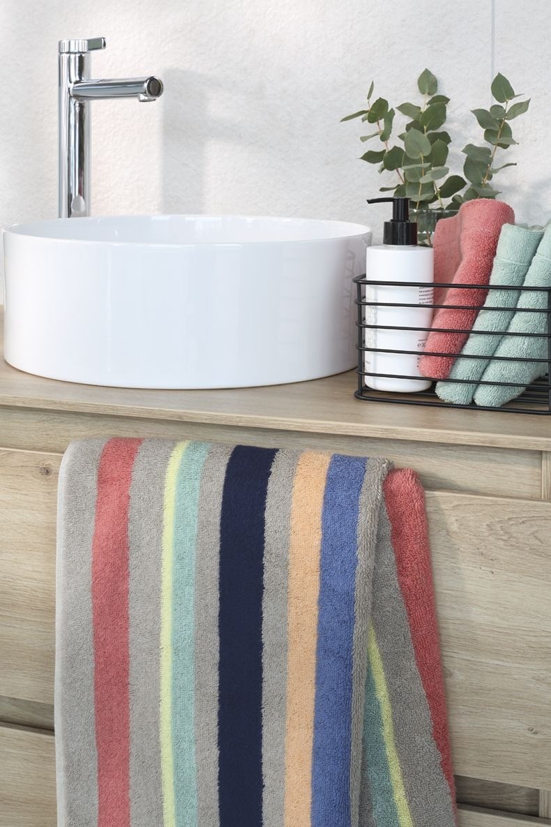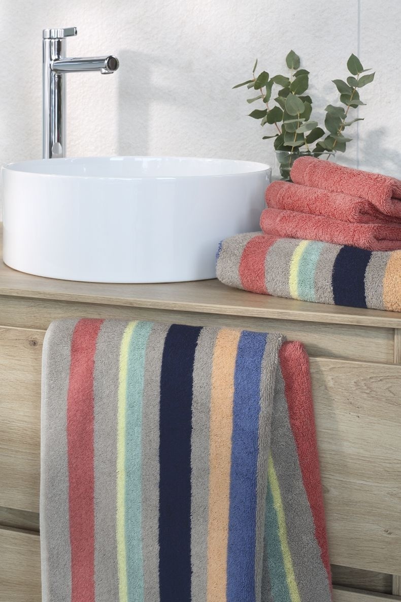 De handdoek is vervaardigd uit hoogwaardig katoen, wat zorgt voor een uitstekende absorptie en een heerlijk zacht gevoel op de huid. Het unieke streepdessin maakt het een echte eyecatcher, perfect voor zowel dagelijks gebruik als speciale gelegenheden. Of je nu jezelf wilt verwennen na een ontspannend bad of gasten wilt verwelkomen in jouw huis, deze handdoek is de ideale keuze.