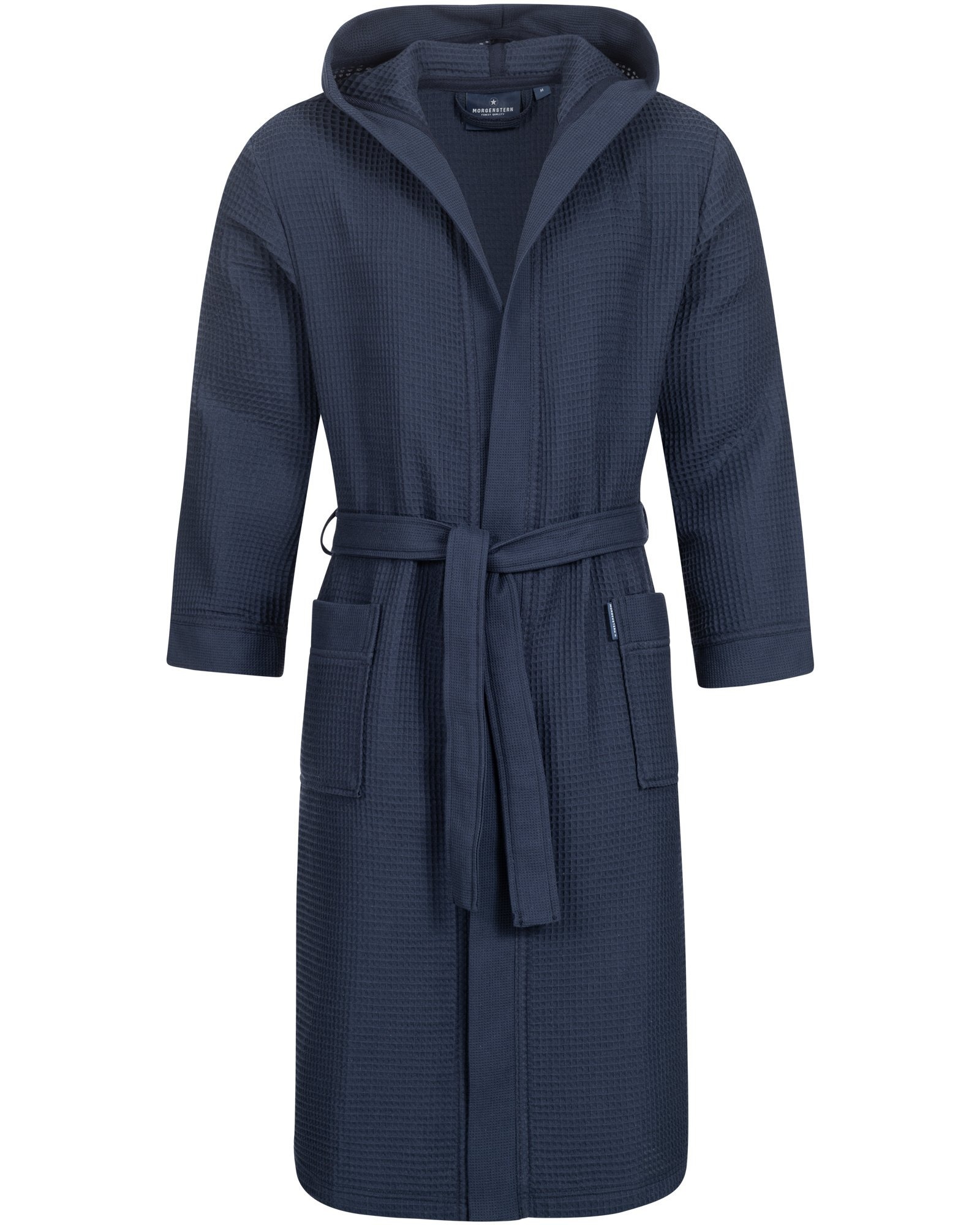 Ervaar de ultieme luxe met de Morgenstern badjas Andrea wafelstof met Capuchon 120cm Navy L. Deze badjas is niet alleen een modeaccessoire, maar ook een must-have voor elke liefhebber van comfort en stijl. Gemaakt van hoogwaardig katoen-wafel, biedt deze badjas een zachte en ademende ervaring die perfect is voor elke gelegenheid, of je nu thuis ontspant of na een verfrissende douche.