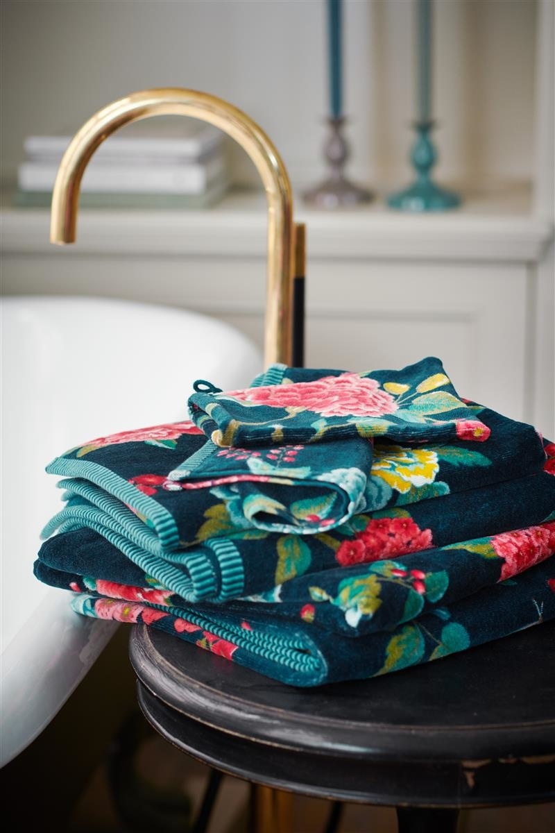 De Good Evening Washand Donkerblauw heeft een dessin van elegant getekende oriëntaalse bloemen. Tussen de bloemen vind je een vogel en een vlinder. In het dessin zijn de kleuren geel, blauw, groen, roze, rood en wit gebruikt. Je kan de badgoedserie Good Evening perfect combineren met de andere badgoedseries van Pip Studio. Dit geeft een leuk mix and match effect in je badkamer.
