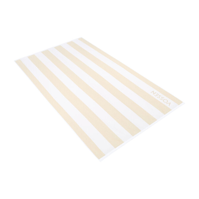 Dit strandlaken onderscheidt zich door een uitgebalanceerde mix van kwaliteit en design. Vossen staat bekend om duurzaam badtextiel en dit model belichaamt die reputatie: zacht aanvoelend katoen dat goed droogt en prettig ligt op zand en ligbedden. Het gestreepte dessin in een warme beige tint geeft een tijdloze, elegante uitstraling die bij veel interieur- en strandstijlen past.